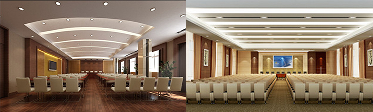 對于四方體的普通會議室聲學(xué)裝修,首先需考慮采用兩種類型吸音材料(多孔性吸音材料、結(jié)構(gòu)性/多共振體吸音材料),以達(dá)到全頻均衡吸音的效果,兩類材料可間隔性安裝。其次在材料布局上,可做到主席臺正對墻做強(qiáng)吸音處理,主席臺后墻及頂部適當(dāng)做吸音處理;兩側(cè)面墻做擴(kuò)散處理,頂部可適當(dāng)做擴(kuò)散處理。